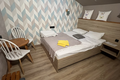 Хорошее расположение. Сам номер маленький, но при этом всё необходимое есть. Чисто, матрас удобный, есть душ и туалет.